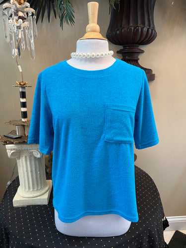 *Curvy* Aqua Blue Terry Cloth Pocket T-Shirt