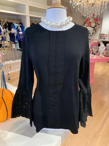 Black Long Sleeve Top w/Eyelet Lace Cuffs