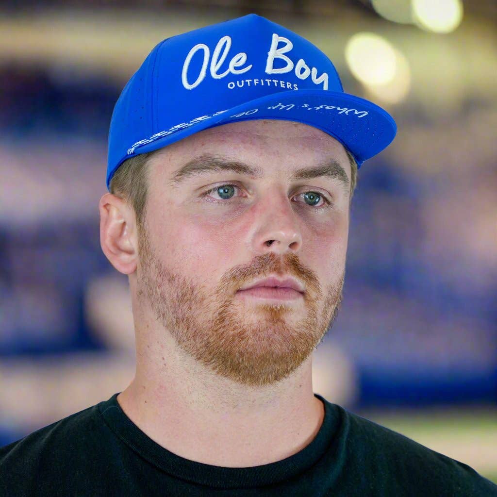 Be game-day ready with the Ole Boy Kentucky Game Day Performance Golf Hat. Embroidered with "Lexington" on the back and the state of Kentucky on the side, this hat shows your love for the Wildcats and your state pride. Featuring our trademarked "What's up Ole Boy!" on the bottom of bill, Its advanced design and lightweight materials ensure ultimate comfort and breathability. Perfect for football games, golf, or casual wear. It's the ultimate accessory for any ole boy. * Polyester/Spandex Material * Waterproof Performance Fabric * Laser Cut Holes For Breathability * Mid Crown * 5 panel Rope Hat
