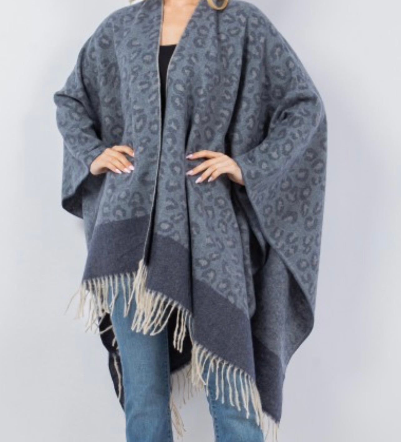 Blue Leopard Knit Poncho